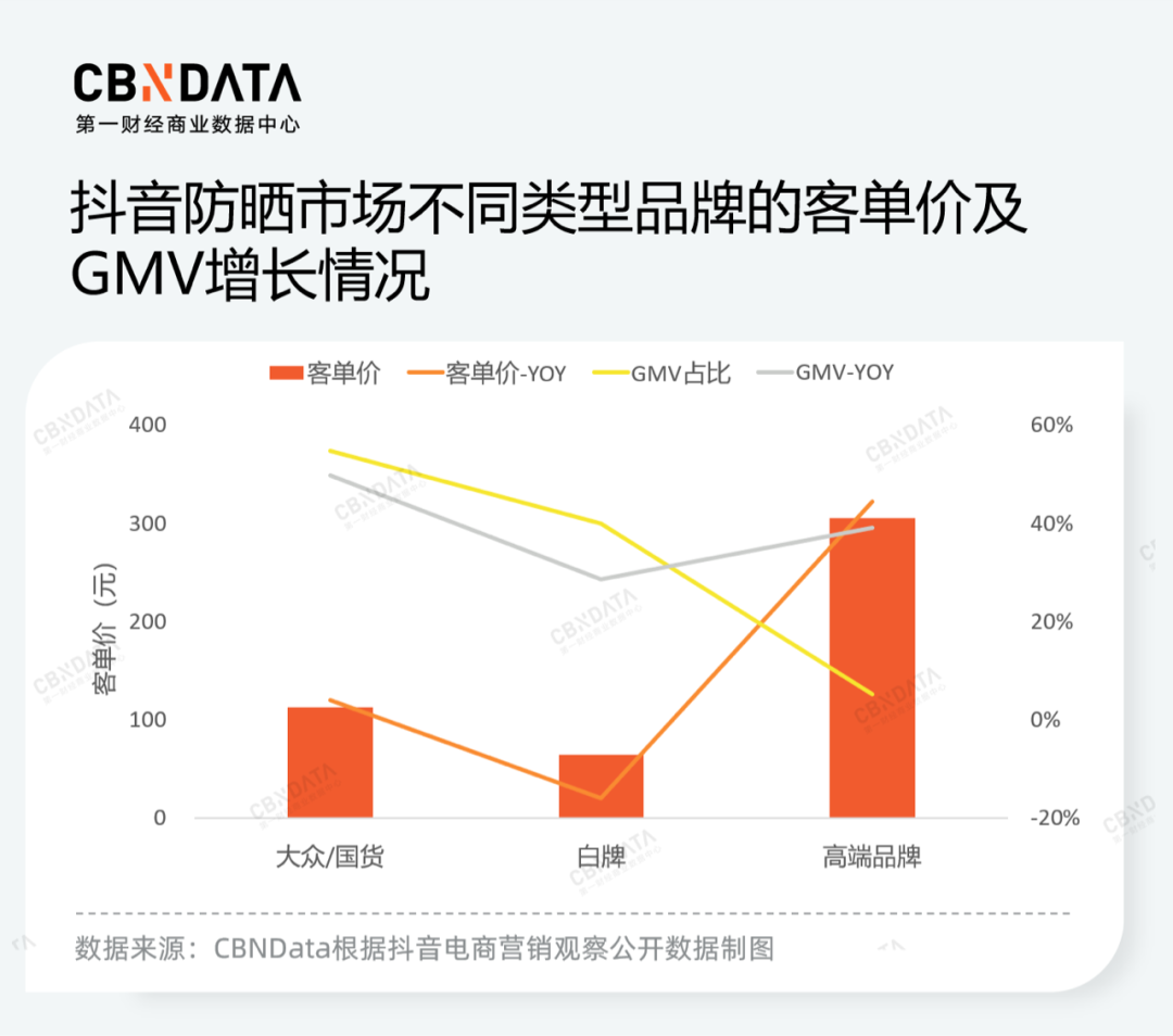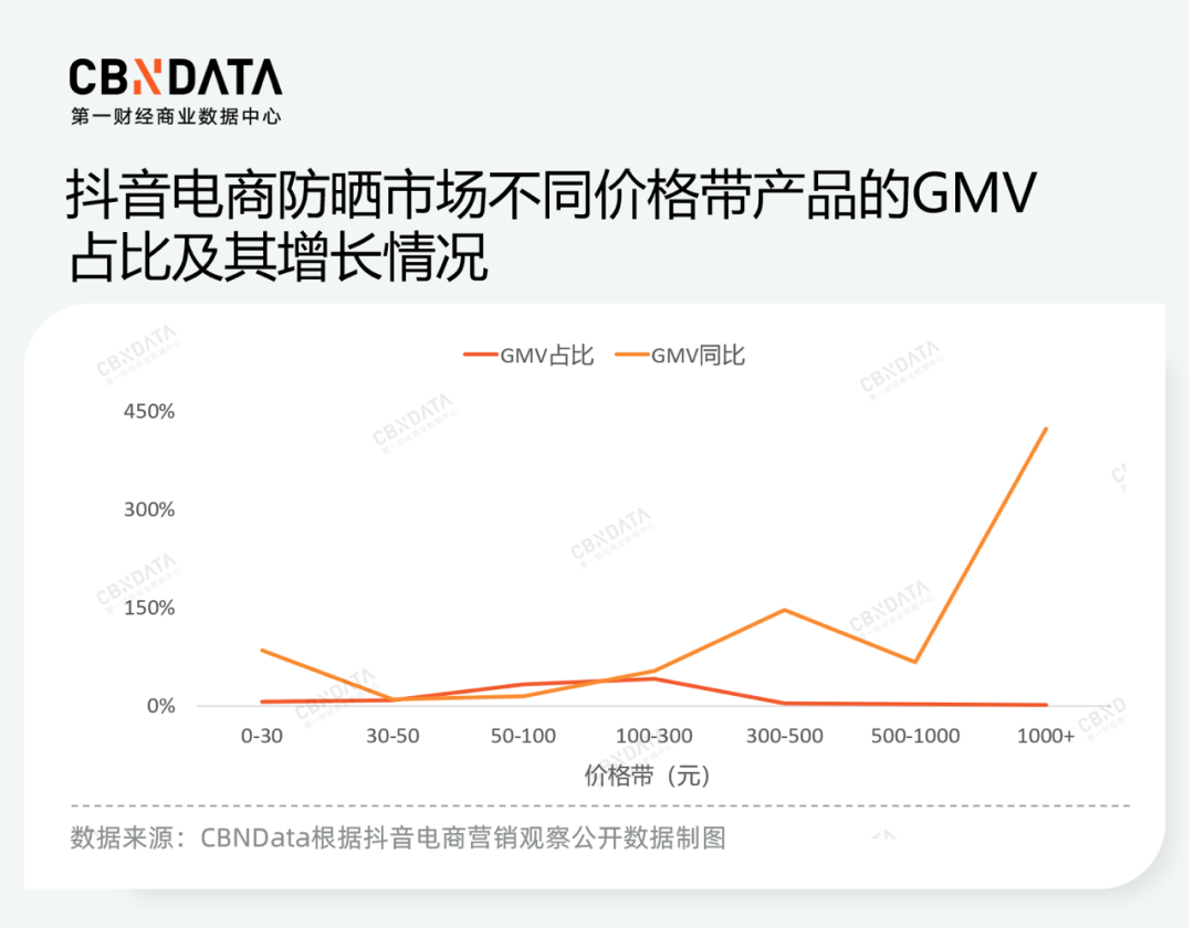 具备养护、抗衰等功效的防晒一方面帮助品牌打出功能牌,另一方面也极大促进品质升级、提高价格空间,帮助品牌向较高价格带上探。多个电商平台公布的数据显示,300元以下价格带是防晒市场主导,但300元以上中高端价格带增长显著。据抖音电商数据,养护防晒的价格集中于300-500元之间,高于防晒市场的主流价格带。薇诺娜今年上新的时光修护防晒乳便添加了云南普洱茶提取物、胶原肽等成分,宣称具有抗氧抗光损伤、抗老效果,其价格较品牌明星产品“清透防晒乳”高出近百元。