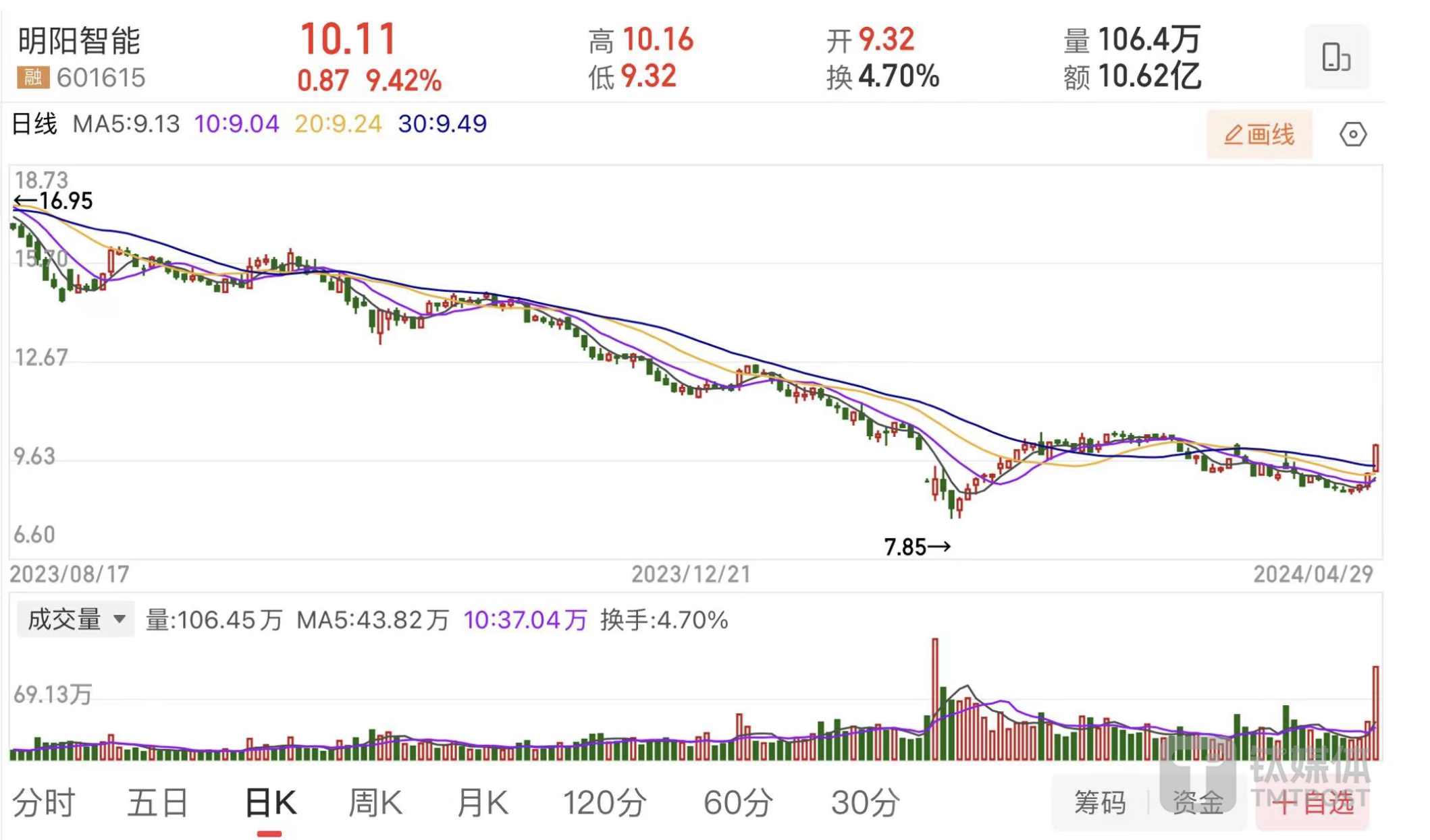 公开资料显示,明阳智能主营业务涵盖风机及其核心部件的研发、生产、销售;新能源电站发电业务;新能源电站产品销售业务等。