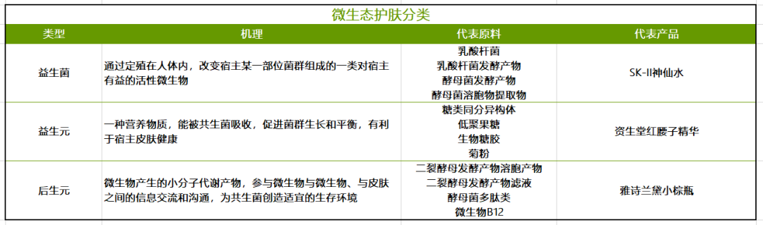 图:微生态护肤分类,来源:公开网络整理