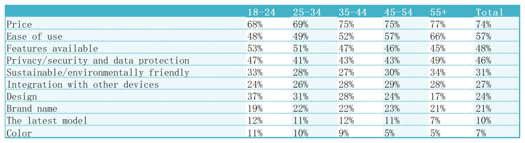 eMarketer数据显示,价格是海外各年龄段消费者购买电子产品时首要考虑的因素,当前欧美不少消费者深陷高通胀泥潭,更加剧了对价格的敏感度。