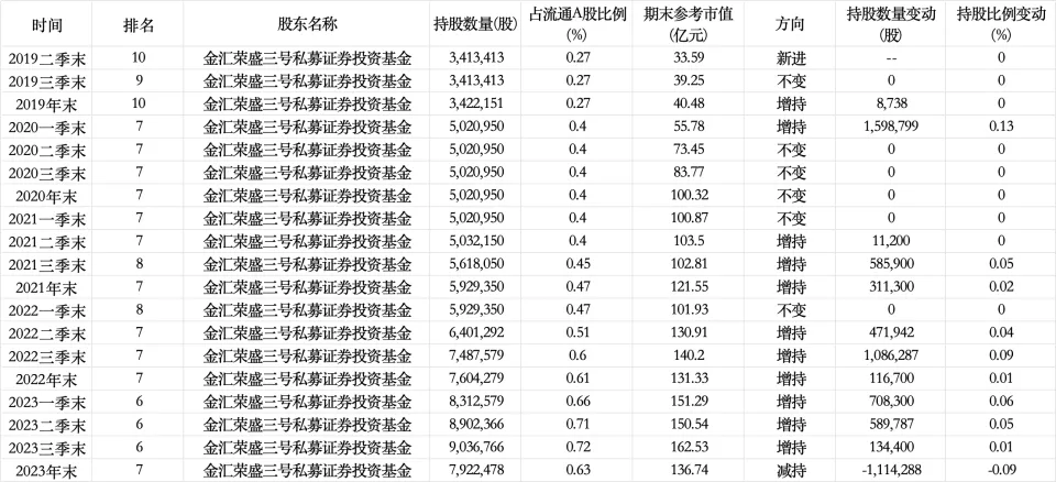 金汇荣盛持股变动情况,数据来源Wind,时代周报记者梳理