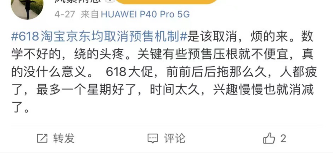 其次是消费者热情不再,预售成了吐槽重灾区。