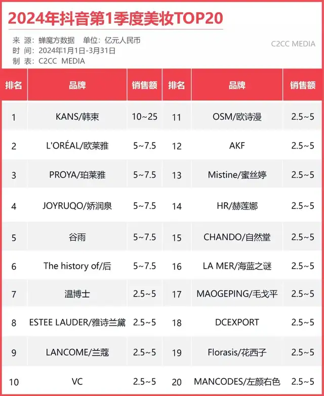 尽管在集团内部看来这是一个显著的增长,但在整个行业的竞争背景下,这种增长的实质和持续性还需进一步评估。具体而言,在今年第1季度抖音美妆TOP20榜单中,雅诗兰黛和海蓝之谜的排名均出现了不同程度的下降,海蓝之谜下降了7位。