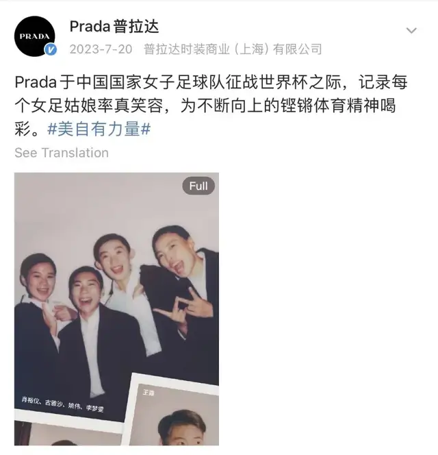 去年,Prada普拉达与中国女足的合作就完美体现了其“不断追求创新、坚持品质”的品牌理念。官方发布的动态中,记录了每个女足姑娘的率真笑容,并为不断向上的铿锵体育精神喝彩,不仅是一次品牌形象的提升,也是对女性力量和体育精神的庆祝。