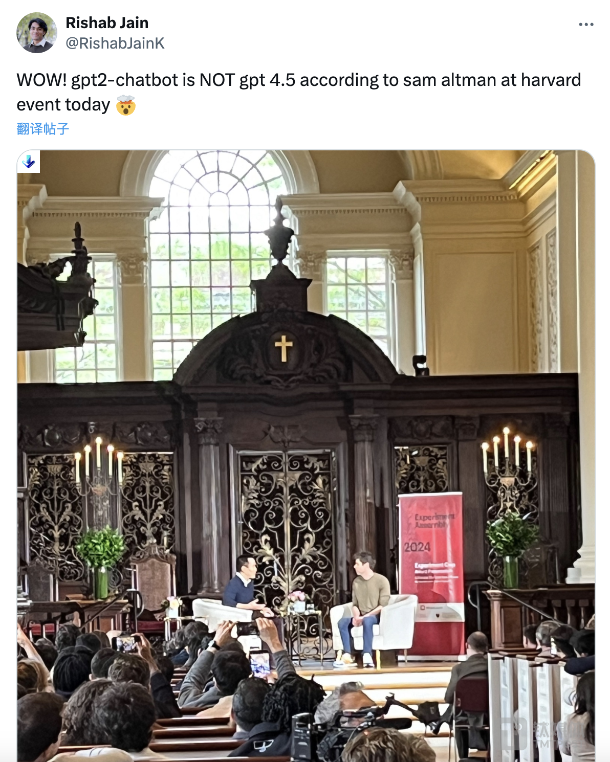 今早哈佛大学演讲中,奥尔特曼承认,神秘gpt2-chatbot确实与OpenAI有关,但不是GPT-4.5。