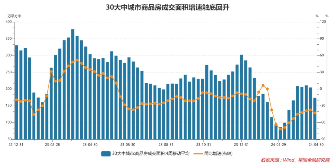 进入二季度,地产刺激政策继续加码,更多一二线城市开始放松限购、限价,对商品房销售面积形成支撑。4月底政治局会议首提消化存量、优化增量,更多需求端政策有望出台。从基数角度看,商品房销售面积于去年4月前后见到相对高点,之后快速回落。受益于政策刺激和基数效应,5月以后,商品房销售面积同比降幅有望快速收窄。