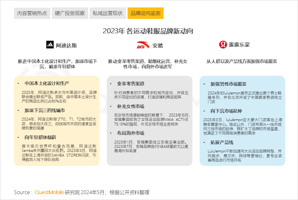 XIV. 探索业务增长新途径是行业共识,运动品牌正通过扩大地理覆盖、细化目标人群、丰富产品线等多维度策略,全面增强市场竞争力