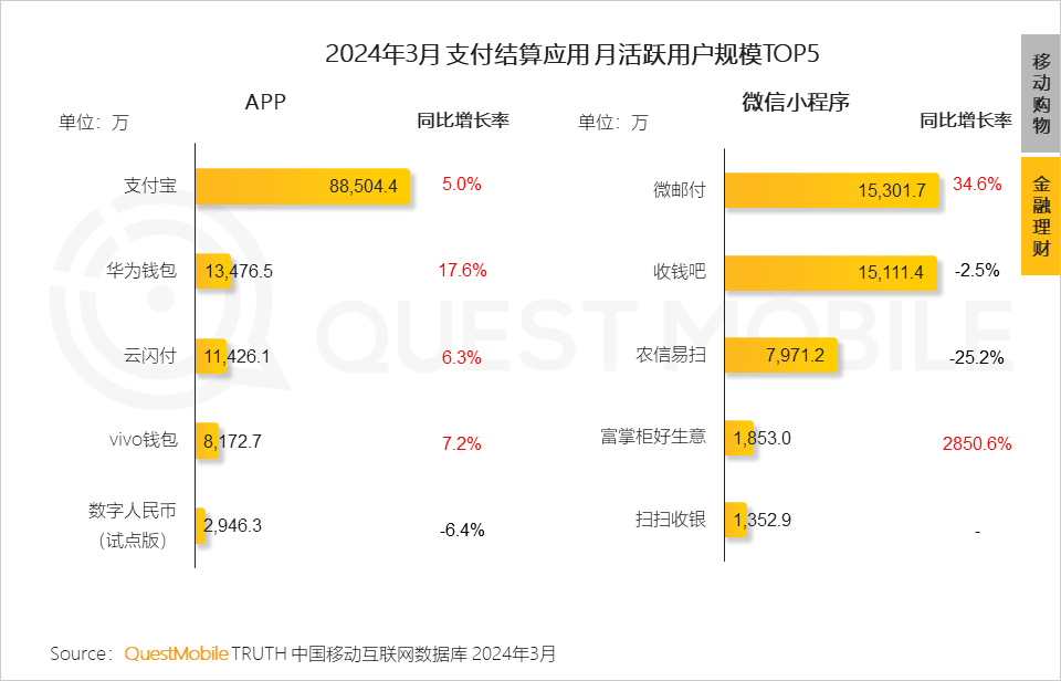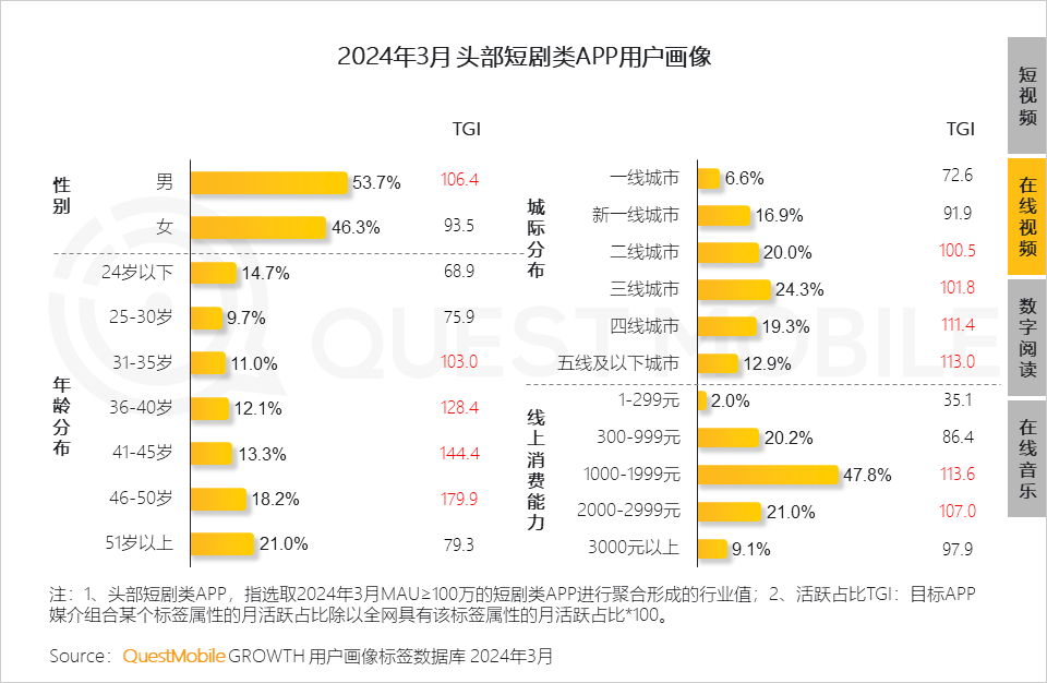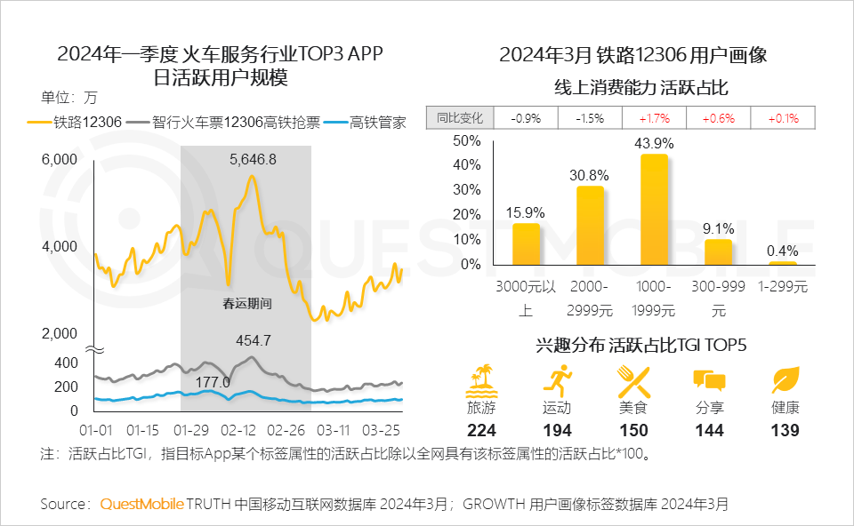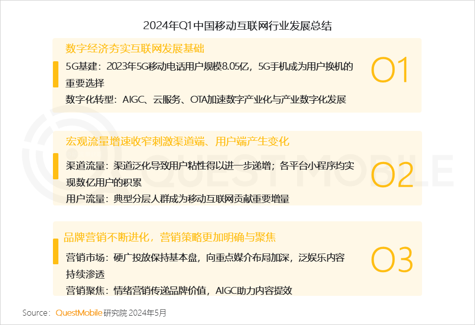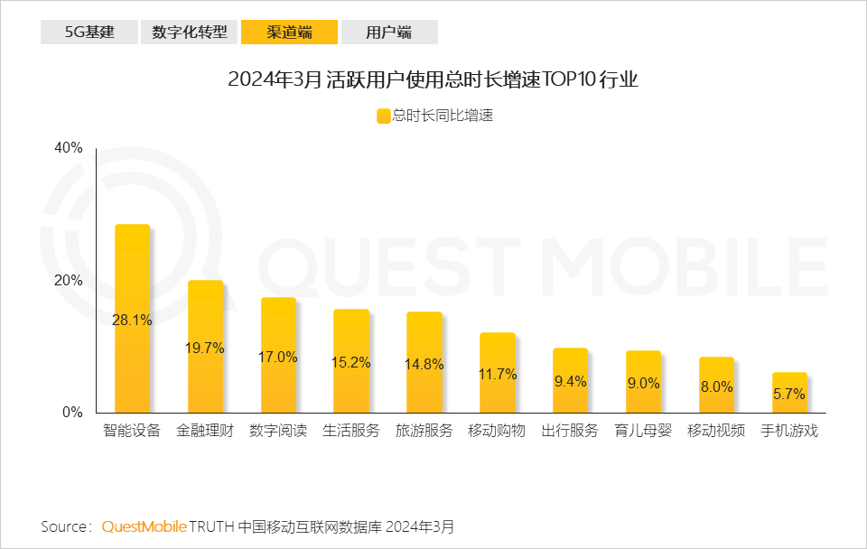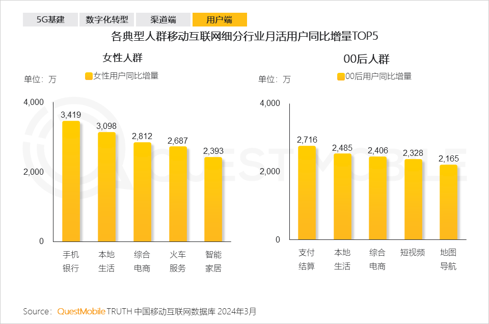 QuestMobile数据显示,2024年3月中高消费意愿的用户增长明显,成为移动互联网用户增量的主要构成。