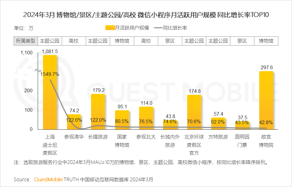 QuestMobile数据显示,上海迪士尼度假区微信小程序在2023年12月迎来爆发式增长,达到千万级别流量,很大程度受“疯狂动物城”主题园区开幕影响,这是全球首个以“疯狂动物城”为主题的园区。
