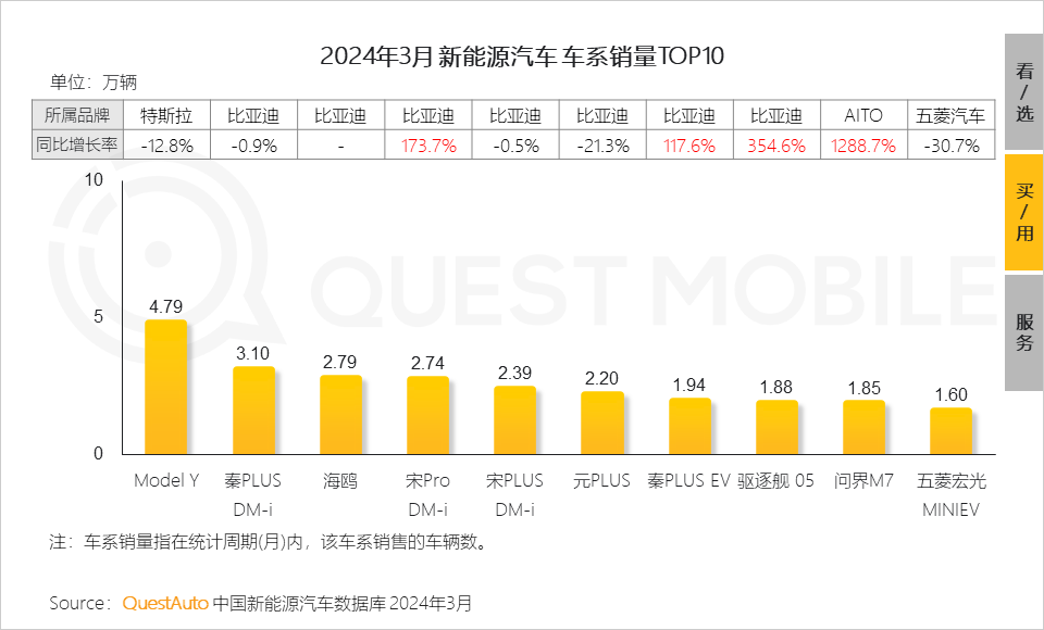 5.12 车系销量方面,Model Y以4.79万辆位列销量榜首,比亚迪打响“价格战”和推出旗下多款新车,秦PLUS DM-i、驱逐舰05等车系占领七席,问界M7在新款车型带动下销量翻倍增长