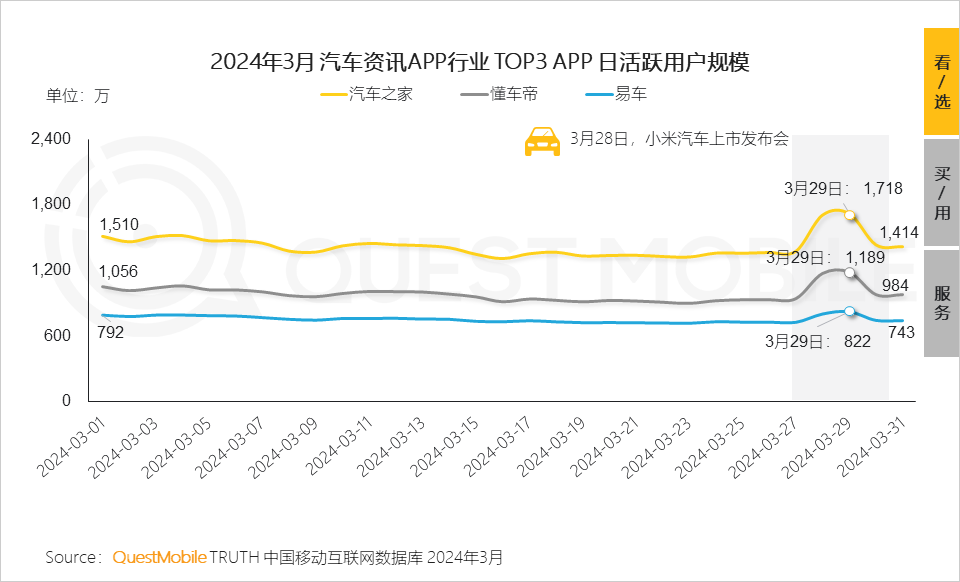 5.8 此外,3月28日小米正式发布旗下首款车型SU7引发市场热议,同时带动三大典型汽车资讯平台在29日达到本月流量高峰