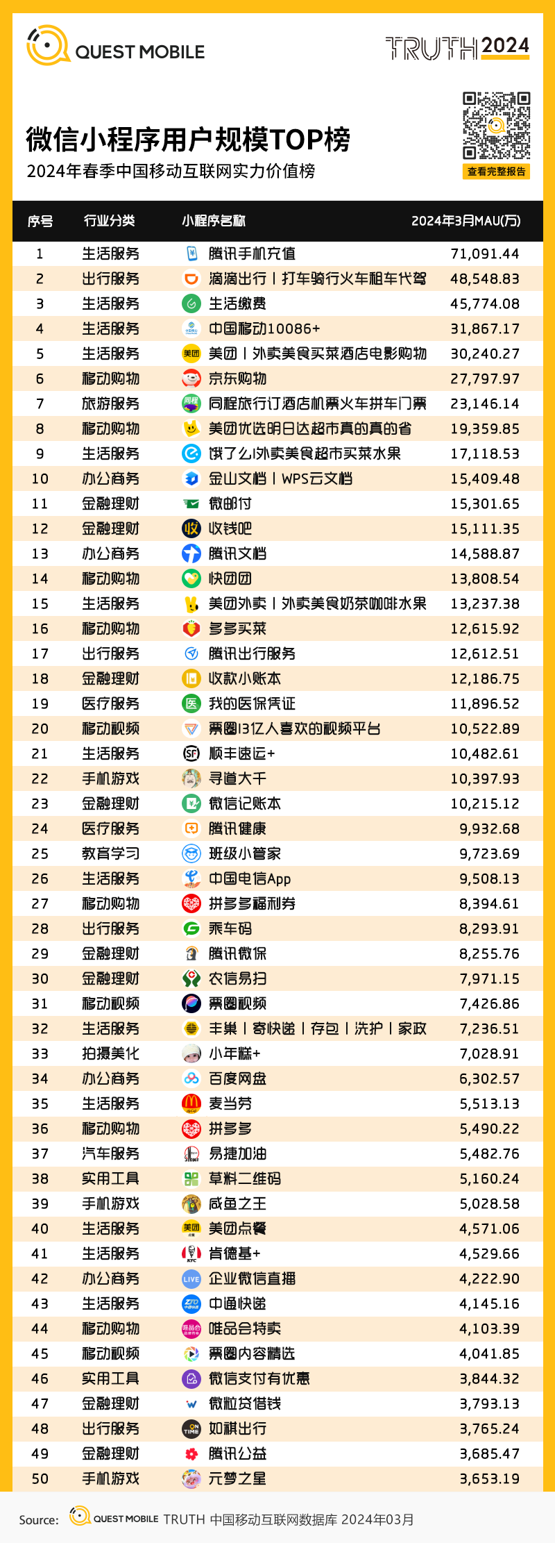 3、微信小程序用户规模TOP榜