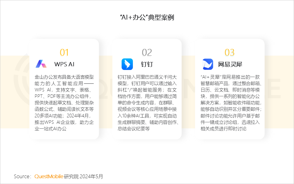 Ⅲ. AI正在成为提升工作效率和质量的重要工具,推动传统办公软件从辅助工具升级为生产力工具,金山办公、钉钉、网易等头部企业C端产品已较为成熟