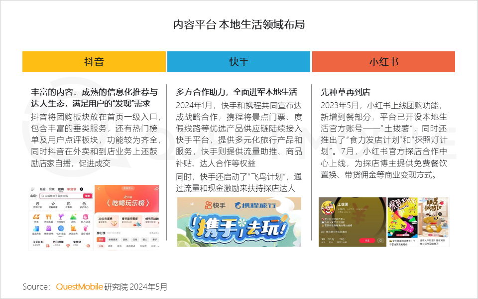 Ⅱ. 内容平台入场,到店业务竞争加剧,抖音、快手、小红书在本地生活领域的打法逐渐成熟,受众也开始习惯内容种草+线下消费的模式