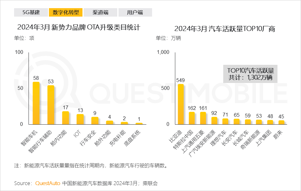 4.8 【产业的数字化-OTA】2024年3月,汽车行业OTA升级项较上月显著上升,达534项,其中6成以上由新势力品牌贡献