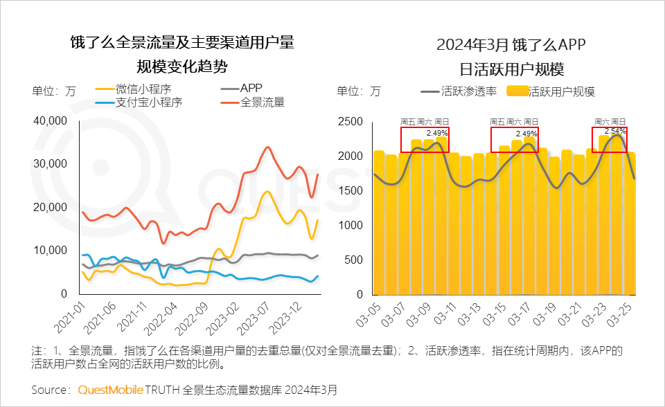 7.3 饿了么用户流量波峰也与打工人的活动周期相契合,下半周日度活跃用户规模规律性上升