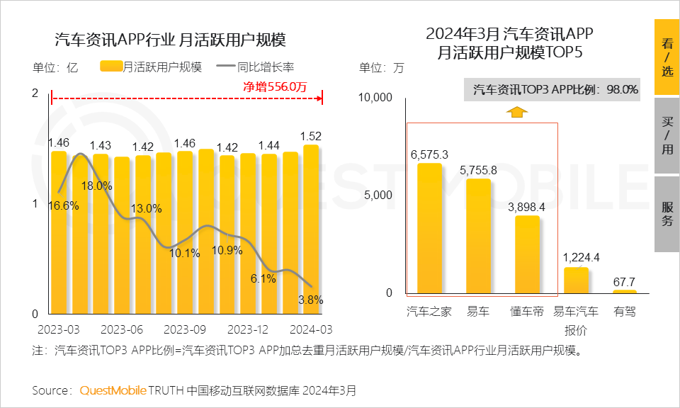 5.3 随着汽车市场的快速发展,用户对于汽车内容需求的提升,促进汽车资讯APP行业用户规模增长;目前该行业市场集中度高,汽车之家、易车、懂车帝三大APP占据行业超九成流量