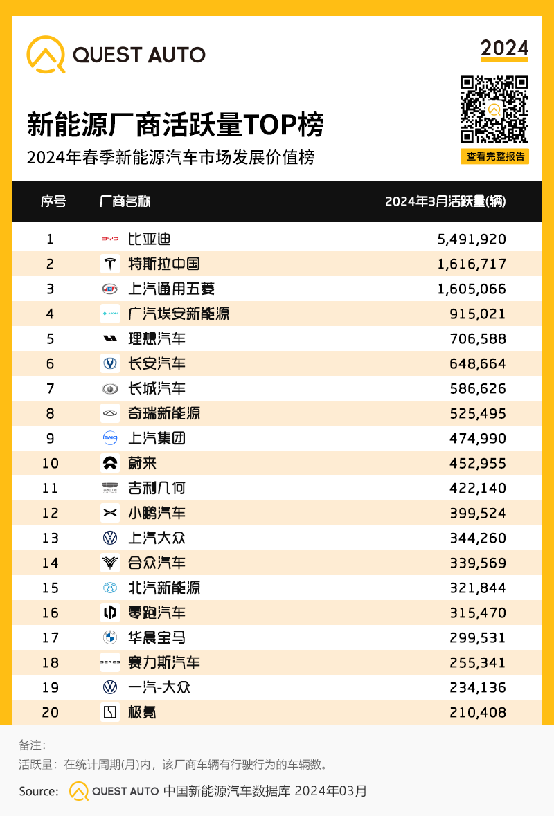 10、新能源厂商活跃量TOP榜
