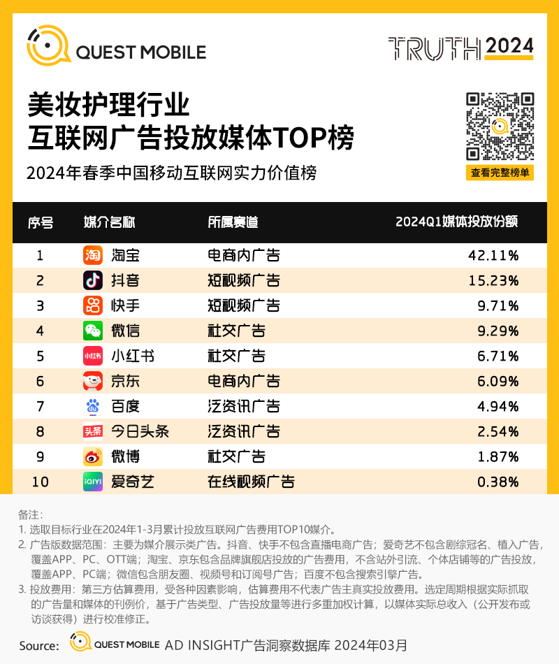 6、美妆护理行业互联网广告投放媒体TOP榜