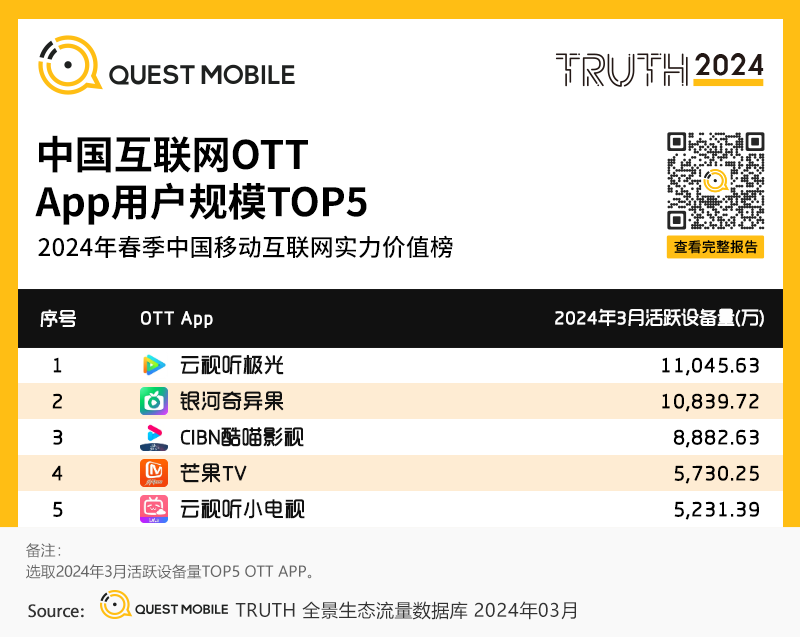 5、中国互联网OTT App用户规模TOP5