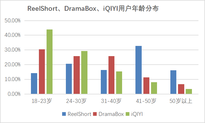 ReelShort、DramaBox、iQIYI用户年龄分布 | 数据来源:点点数据