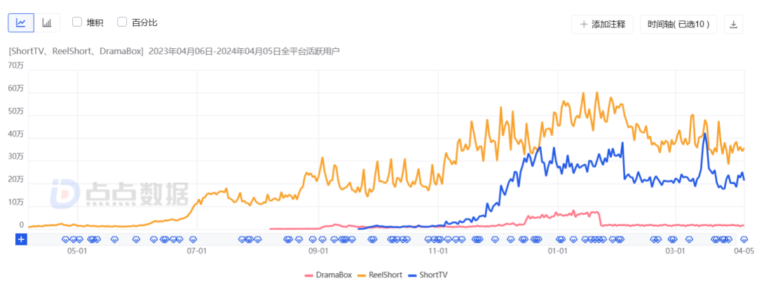 近一年头部短剧出海App在美国的DAU变化趋势 | 图源:点点数据