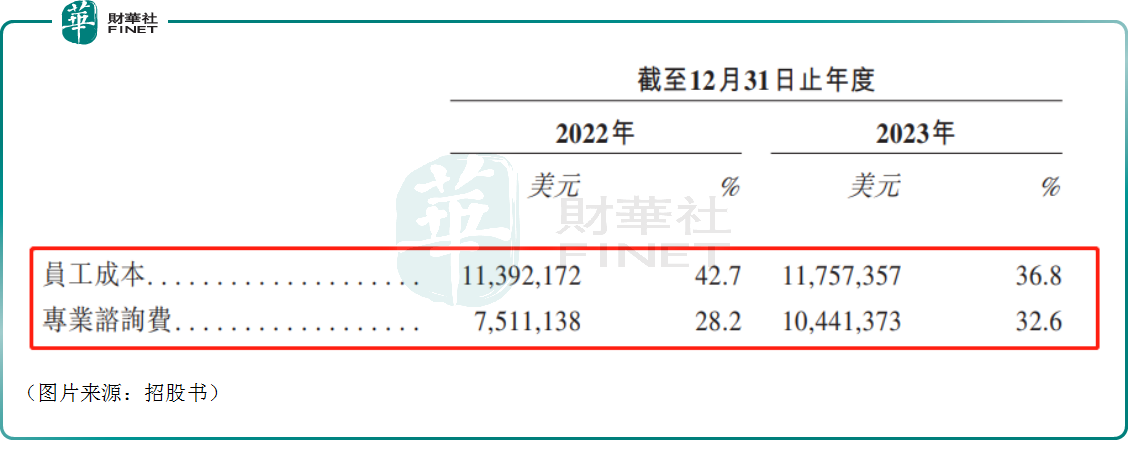 数据显示,员工成本、专业咨询费是一般及行政开支的大头。觅瑞集团亦称,办公开支及专业及咨询费增加,导致一般及行政开支有所增加。