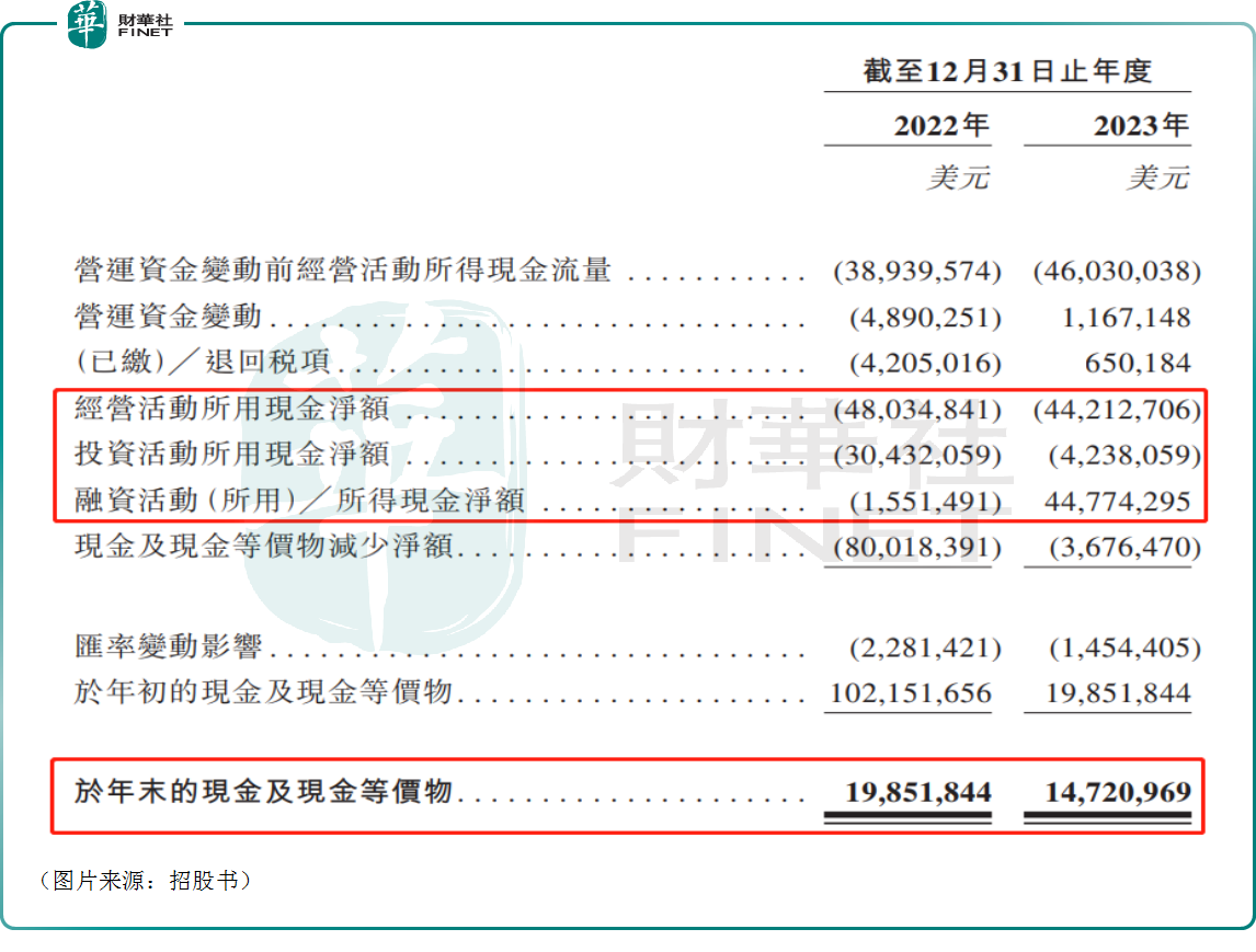 数据显示,2022年、2023年,觅瑞集团录得经营现金流出净额4803.48万美元、4421.27万美元,显示公司“造血”能力有待提升,主要是因为觅瑞集团年内的除税前亏损。