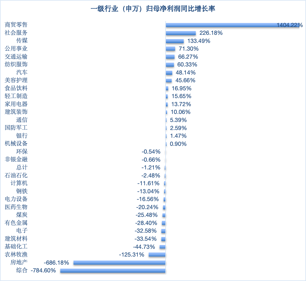 从增长角度切入,去年有16个申万一级行业实现利润同比增长。其中消费领域复苏明显,商贸零售、社会服务、传媒行业的同比增速均超100%。细分行业中,商用车、游戏行业的利润增速更是超过1000%。