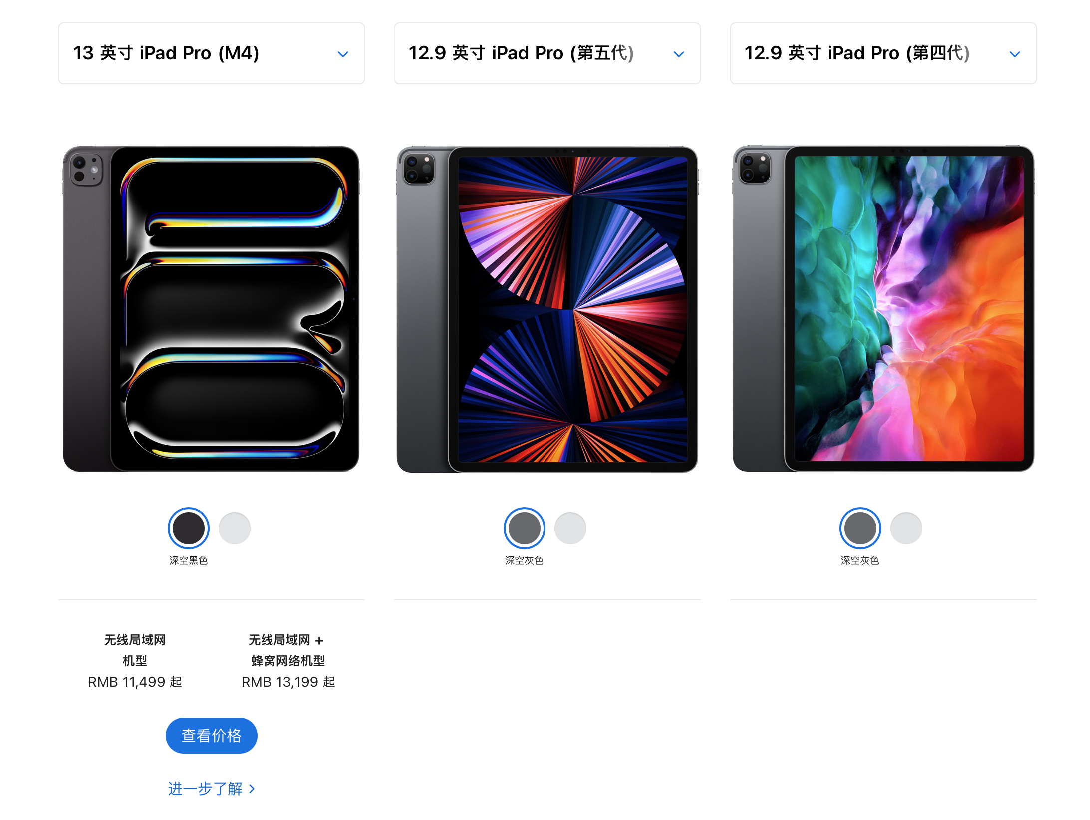 顺带一提,iPad Pro 13寸版本的1TB和2TB版本的售价分别为16599元和19999元,这个价格小雷相信99%的消费者都难以接受。