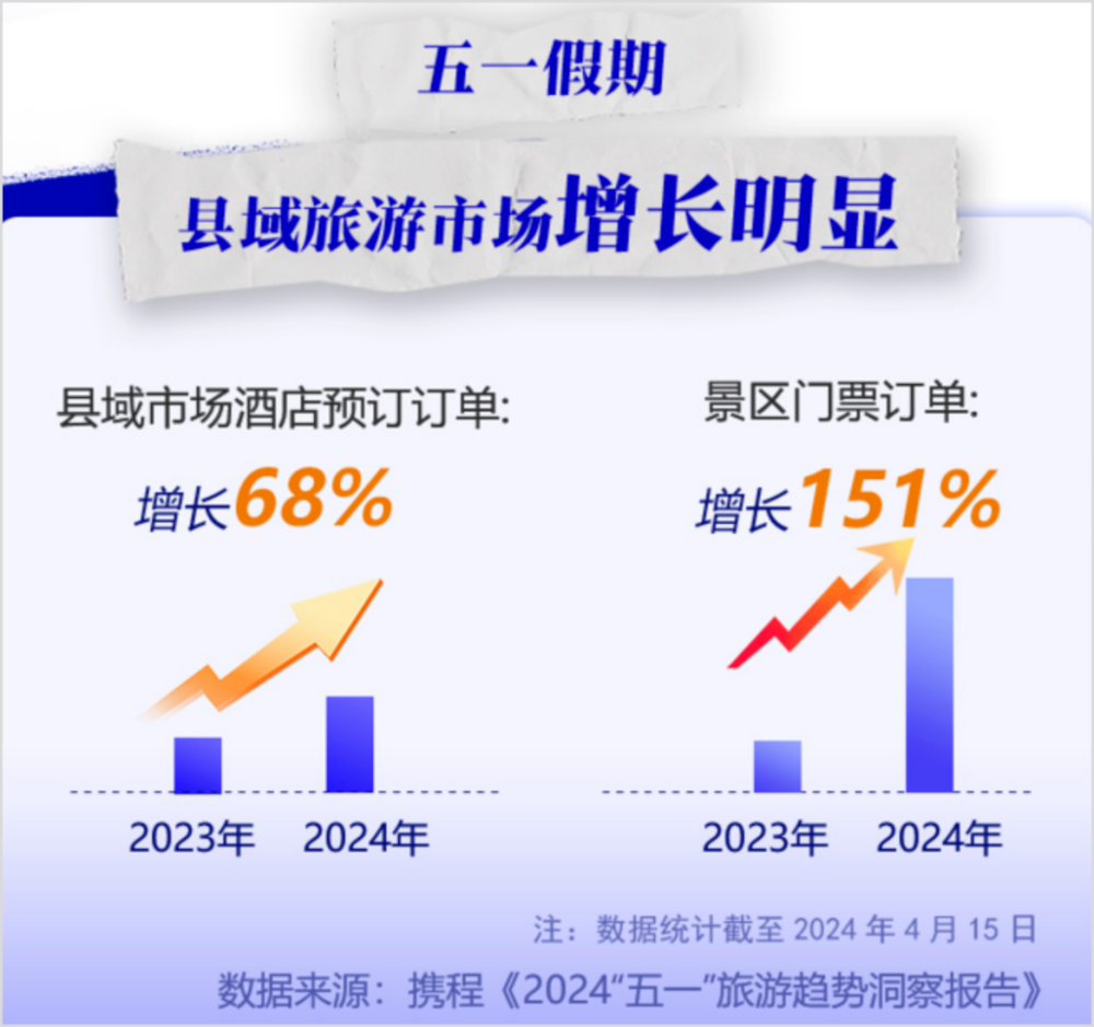 携程发布《2024“五一”假期旅行总结》数据显示,今年“五一”假期,国内旅游市场在去年同期高位基础上保持稳中有增。与此同时,此次假期显示出结构性变化:入出境游增速高于国内游,下沉市场增速高于一二线市场。具体而言,一二线城市增幅小于三四线城市,三四线城市小于县域城市。