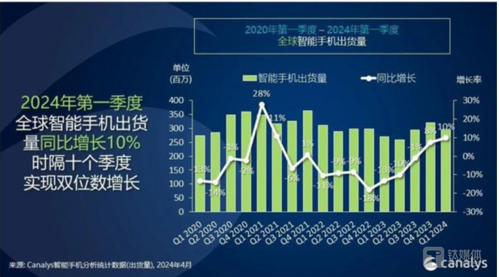 平板、手机、PC等消费电子产品在经历长时间的经营压力后,产业链库存去化接近尾声,出货量增速加速回升,行业整体正朝着向好的趋势发展。据Canalys数据,2024年第一季度,全球手机市场迎来双位数增长,以10%增长率出货2.962亿部;PC总出货量达5720万台,同比增长3.2%。