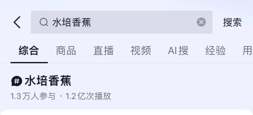 《天下网商》发现,无论在淘系还是在拼多多、抖音,可以水培的“蕉绿”都是新晋人气王:抖音上,“水培香蕉”的话题有超过1.3万人参与,相关视频有累计1.2亿次播放,很多主播直接在田间地头插上手机直播,背后是绿油油的香蕉和农户忙碌的打包发货的场景。