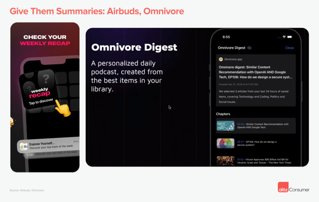 Omnivore——一个开源的“稍后阅读”应用程序——最近演示了AI如何真正提供创造性的总结,从而惠及用户。利用文本到语音技术和LLM驱动的总结,Omnivore可以从用户库中保存的项目创建每日播客。这不仅允许用户从他们保存的文章中获得片段,而且还让他们以他们想要的任何方式消费内容。