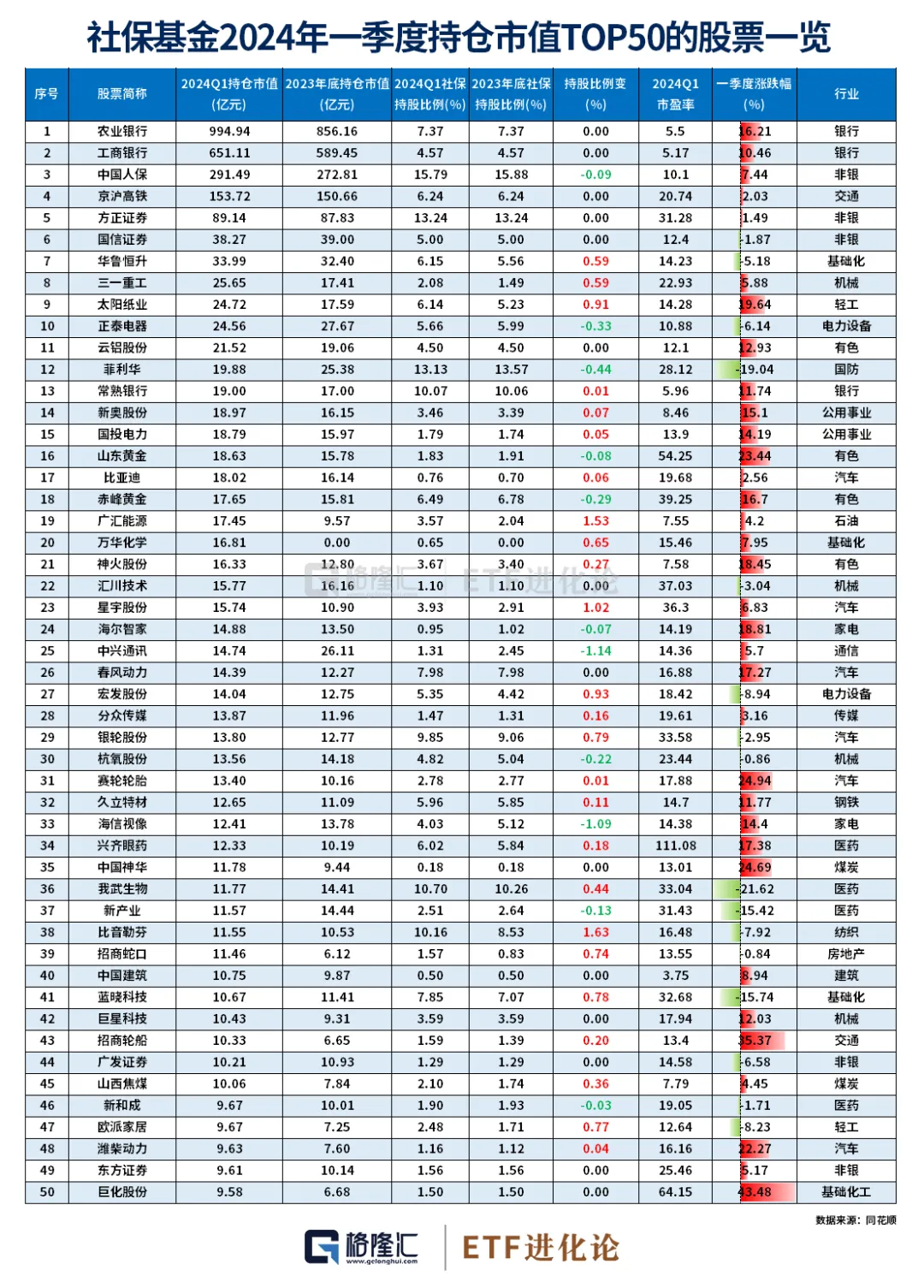 社保基金最新重仓股一览