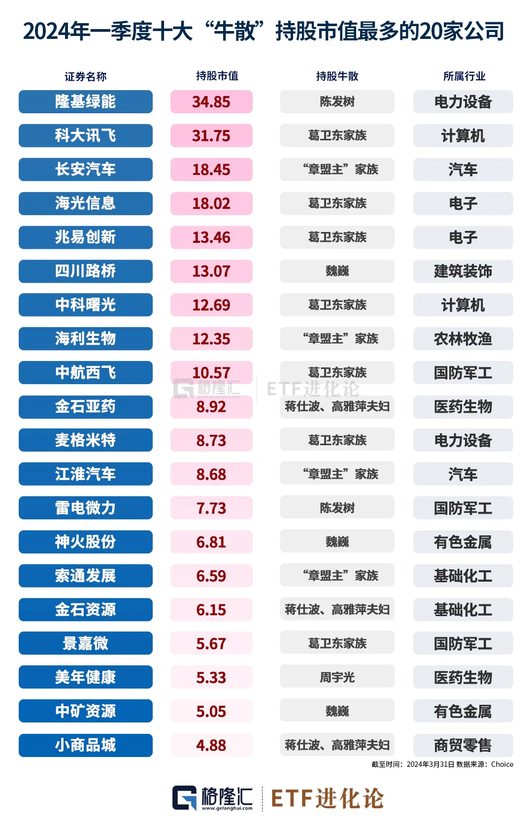 值得注意的是,以上持仓数据来自上市公司一季报前十大流通股东明细,统计时间是3月31日。4月30日国泰君安上海分公司席位一口气卖出18.36亿元的长安汽车,市场猜测是章盟主家族买的。