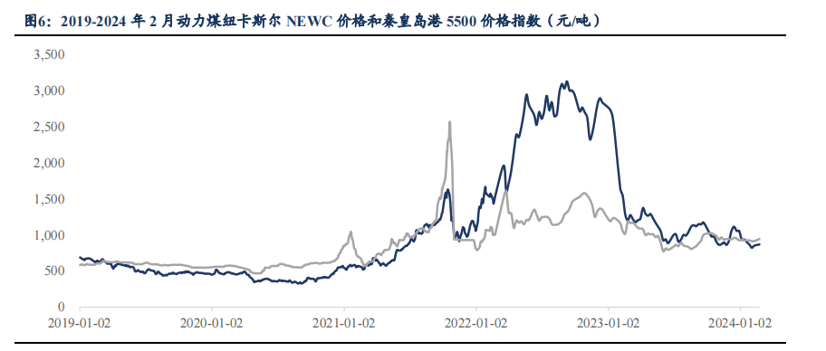 煤炭价格暴跌由国内煤炭增产保供以及进口煤放开两大因素影响。2022年国际能源危机爆发,我国甚至出现了两次拉闸限电的极端情况,因此进入2023年后国内加大煤炭开采力度,全国原煤产量47.1亿吨,同比增长3.4%。与此同时,防疫政策放开后,进口煤大增,23年煤炭进口量4.74亿吨,同比增长61.8%。煤炭产量和进口量两大数据均创历史新高。