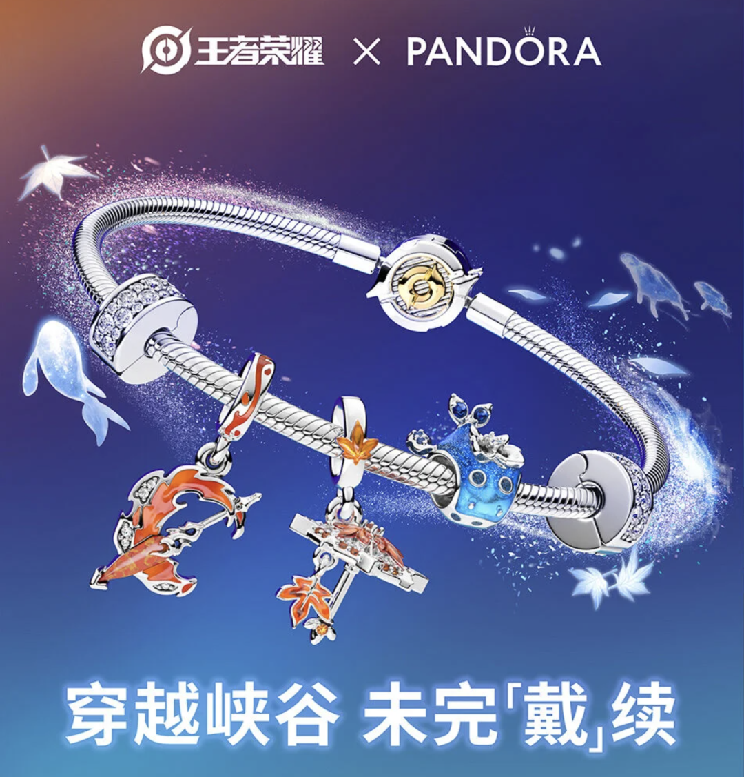 与之形成强烈反差的是,潘多拉的核心产品仍然主打“梦幻”“童话”风格,并且试图通过与漫威、迪士尼以及《王者荣耀》的跨界合作来触达更多年轻群体,完成增量用户的挖掘,但这又让潘多拉的品牌显得更加幼稚。