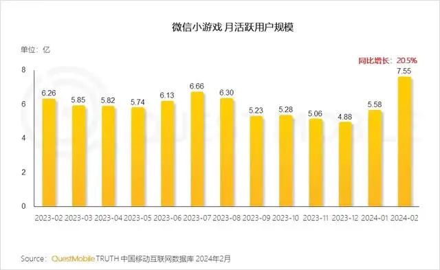 没办法,观众老爷爱这口。按照QuestMoblie今年发布的洞察报告,微信小游戏活跃用户规模已经突破7.5亿。