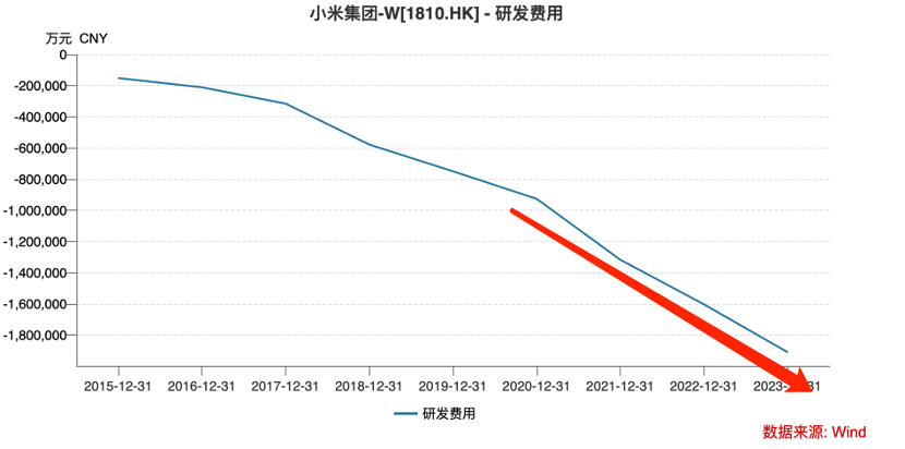 2023年理想汽车研发费用106亿元,小鹏53亿元,蔚来134亿元,刚刚赴美上市的极氪汽车支出84亿元,小米在2021年初宣布造车,其后研发费用经历了跳跃式增长,2023集团研发费用支出超过190亿元,花费在汽车方面应该也不会低于90亿元。