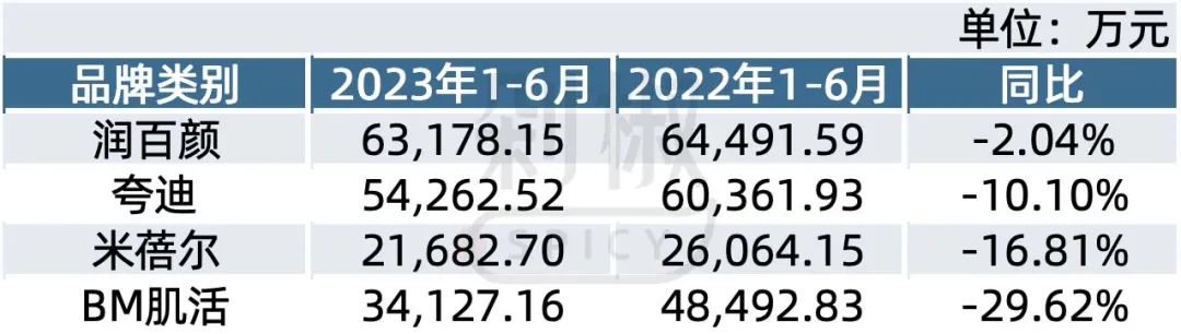 2023上半年华熙生物品牌收入明细