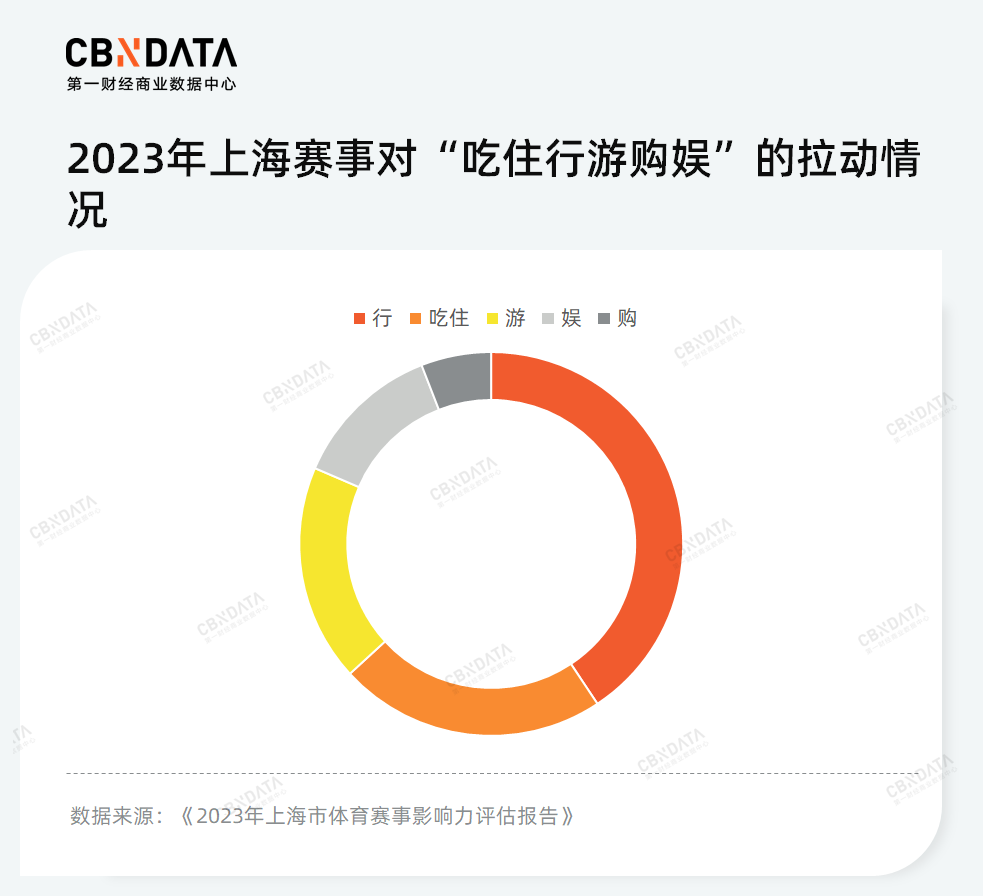 伴随这些赛事的启动,体育消费在国内不断升温。其中,观赛支出成为我国城市居民消费结构中的一个重要组成部分。而赛事的溢出效应更是释放了多层次、多元化的消费欲望。以上海为例,上海体育总局发布的《2023年上海市体育赛事影响力评估报告》数据显示,2023年上海市共举办了118项体育赛事,吸引现场受众规模达148万人次,直接带动消费37.13亿元,对于餐饮、住宿、交通、旅游等六大领域的拉动效应高达47.53亿元。