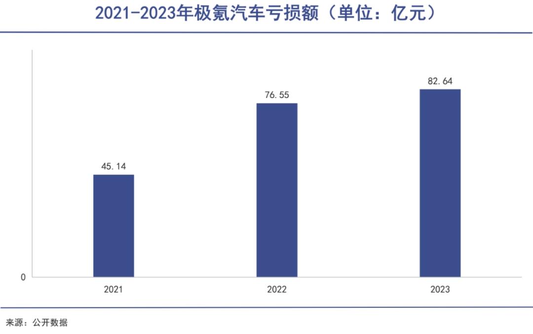 根据招股书显示,极氪在2021年、2022年及2023年,分别录得净亏损人民币45.14亿元、人民币76.55亿元及人民币82.64亿元,近三年累计亏损高达204.33亿元,平均每年亏损68亿元。