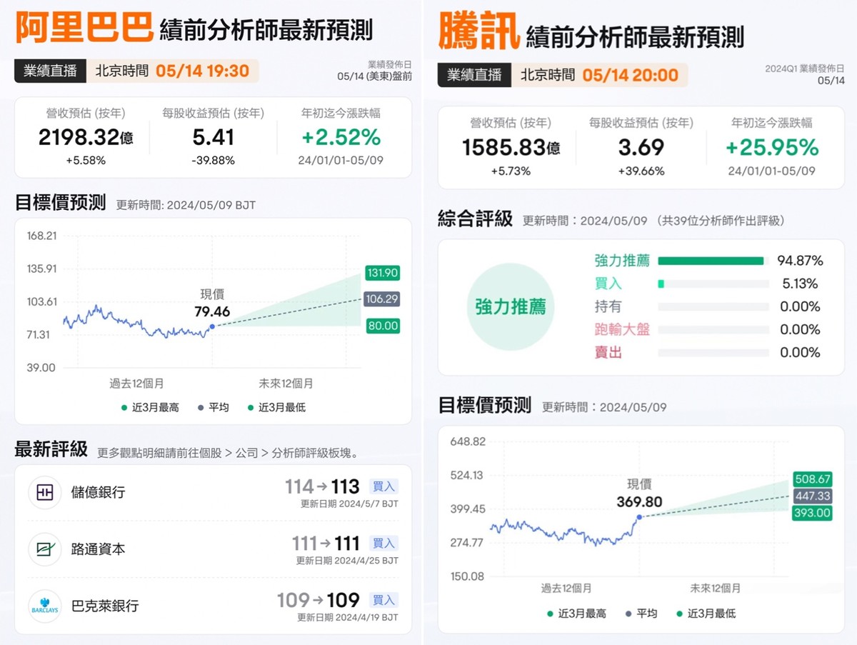 在高盛此前发布的腾讯和阿里的业绩前瞻研报中,腾讯预计24财年Q1营运利润将同比增15%,游戏收入同比降3%;阿里巴巴24财年Q4 EBITA将同比下滑8%(注:阿里巴巴财年为每年4月1日至第二年3月31日),GMV同比增6%。