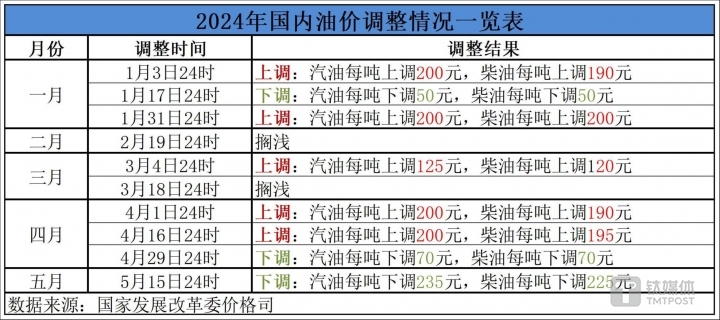 2024年5月15日,国家发展改革委价格司发布公告,根据近期国际市场油价变化情况,按照现行成品油价格形成机制,自5月15日24时起,国内汽、柴油价格(标准品)每吨分别下调235元、225元。