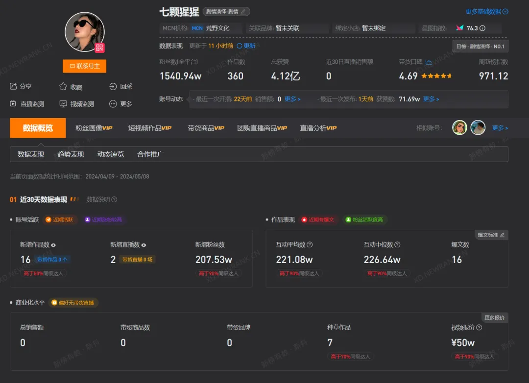 目前来看,该系列短剧不仅让“七颗猩猩”团队收获了增粉量和知名度,带火了剧本身和此类题材,在广告收益方面也十分可观。