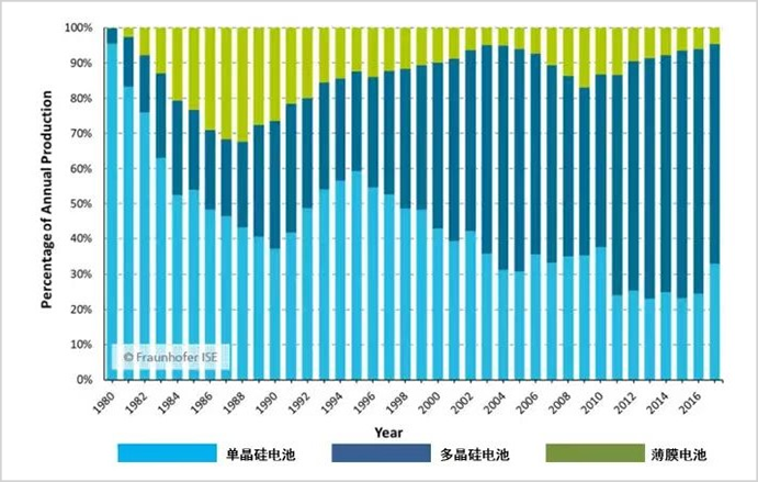 但好景不长,多晶硅在金融危机后很快因过剩而出现价格暴跌,薄膜电池的成本优势荡然无存。此后中国通过全产业链的努力把晶硅路线的降本增效推向了极致,而美国企业押注的薄膜技术则渐渐沦为边缘路线,到现在行业市场份额已经不到5%。回头来看,如果不是那一轮多晶硅价格暴跌,薄膜电池或许并不会以一种摧枯拉朽的方式败下阵来。