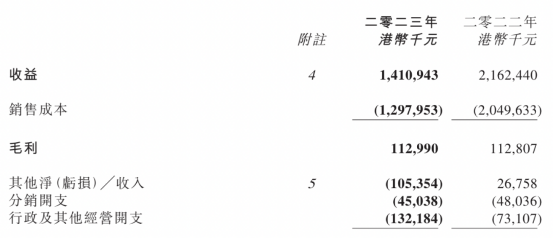 雨润的经营费用包括分销开支和行政及其他经营开支。2023年,雨润的经营费用为1.77亿港元,在营收中占比12.6%;2022年的经营费用为1.21亿港元,占比仅为5.6%。值得注意的是,2023年雨润的行政及其他经营开支为1.32亿港元,较2022年的7310.7万港元增长近一倍。对于该项开支的大幅增长,雨润在财报中并无过多说明。