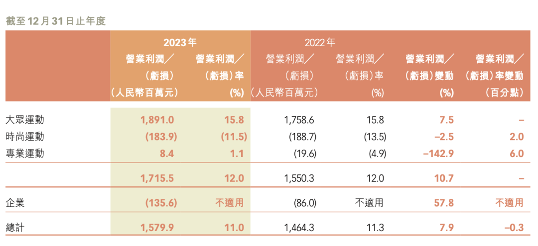 更重要的是,2023年专业运动业务已经实现扭亏为盈。