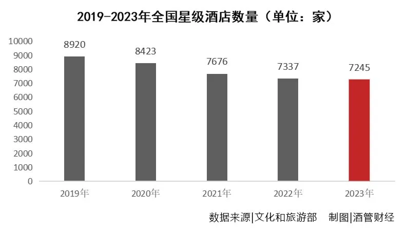 2023年全国共经营星级酒店7245家,比2022年减少92家,比2021年减少1178家。